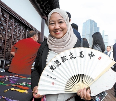 “可以幫我寫一幅書法嗎?請(qǐng)寫上我的中文名字?!表n燦才請(qǐng)書法家在一把折扇上題寫了自己的名字,興奮地拿起折扇請(qǐng)記者為他拍照留念。“這是我第一次到豫園,這里的中國(guó)傳統(tǒng)建筑非常漂亮,傳統(tǒng)藝術(shù)作品也很雅致?!笨吹接袑I(yè)人士在展示太極拳,津巴布韋駐華大使館公使銜參贊潘迪賽·馬耶拉走進(jìn)表演者當(dāng)中,有模有樣地?cái)[出了幾個(gè)造型,“我特別喜歡中國(guó)功夫,看過(guò)《少林寺》等很多相關(guān)的中國(guó)電影。”
