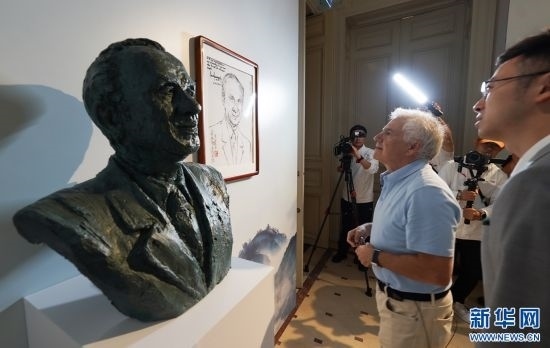 國際奧委會(huì)副主席、薩馬蘭奇體育發(fā)展基金會(huì)創(chuàng)始人胡安·安東尼奧·薩馬蘭奇到訪“中國之家”,參觀了袁熙坤的創(chuàng)作。