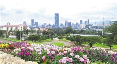 從友誼廣場(chǎng)眺望亞的斯亞貝巴天際線。 本報(bào)記者 萬 宇攝