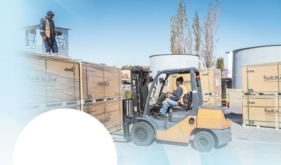 在中建材南非海外倉,當(dāng)?shù)貑T工正在裝卸貨物。本報非洲中心分社 希拉茲·莫林?jǐn)z