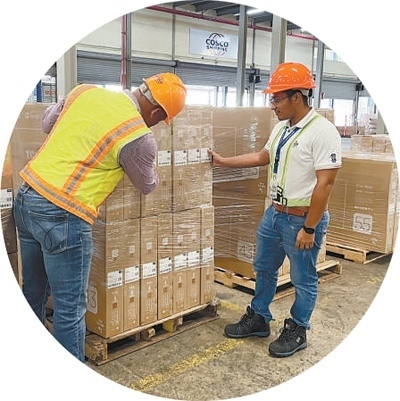 “海運+海外倉”是中遠(yuǎn)海運探索出的“一站式”全程綜合物流服務(wù)模式,集海運、倉儲、報關(guān)等服務(wù)于一體。圖為在巴拿馬科隆自由貿(mào)易區(qū)內(nèi)的中遠(yuǎn)海運海外倉,工作人員對抵達(dá)的貨物進(jìn)行質(zhì)檢??逅埂ぐ嗟夏釘z