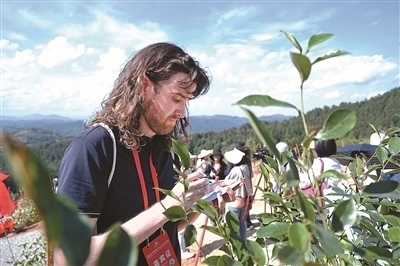 2024“鼓嶺緣”中美青年交流周期間,北京大學(xué)燕京學(xué)堂研一的美國(guó)學(xué)生葛逸思在為種植的友誼樹寫上寄語(yǔ)。新華社記者 林善傳攝