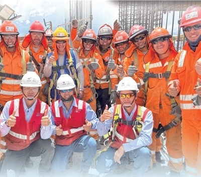 在中企承建的秘魯庫斯科圣安東尼奧國立大學升級改造項目施工現(xiàn)場,中秘兩國建設(shè)者合影。水 源攝