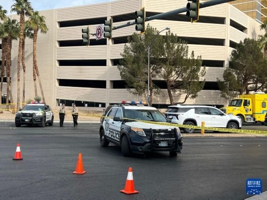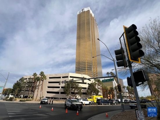 1月1日,在美國(guó)內(nèi)華達(dá)州拉斯維加斯,警方封鎖發(fā)生電動(dòng)汽車爆炸事件的特朗普酒店門(mén)前區(qū)域。新華社記者 譚晶晶 攝