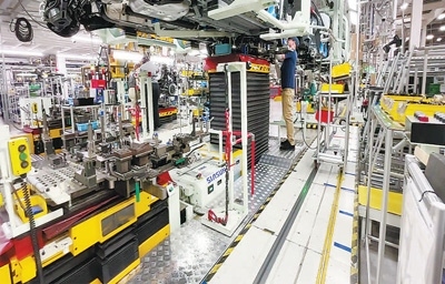 德國一家知名汽車制造商車間內(nèi),一個個明黃色的超大“行李箱”正在奔走忙碌。它們自主跟隨車身,時刻與其保持同步,并將發(fā)動機、后橋舉起,對接底盤,完成拼合……