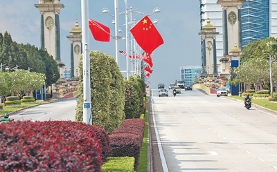 4月15日,馬來西亞行政首都布特拉加亞街頭懸掛著中馬兩國國旗,歡迎習近平主席到訪。