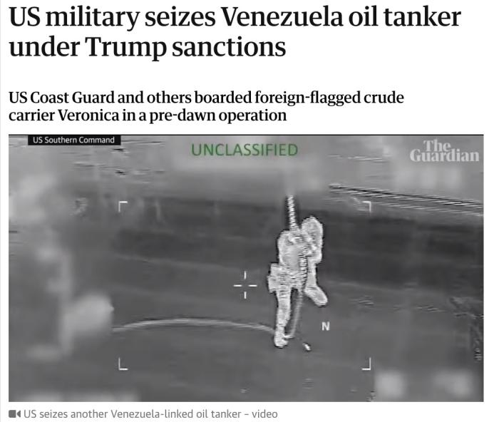 報(bào)道稱,這是自本月初美方對(duì)委內(nèi)瑞拉發(fā)動(dòng)突然襲擊,強(qiáng)行控制委內(nèi)瑞拉總統(tǒng)馬杜羅夫婦以來(lái)扣押的第六艘油輪。