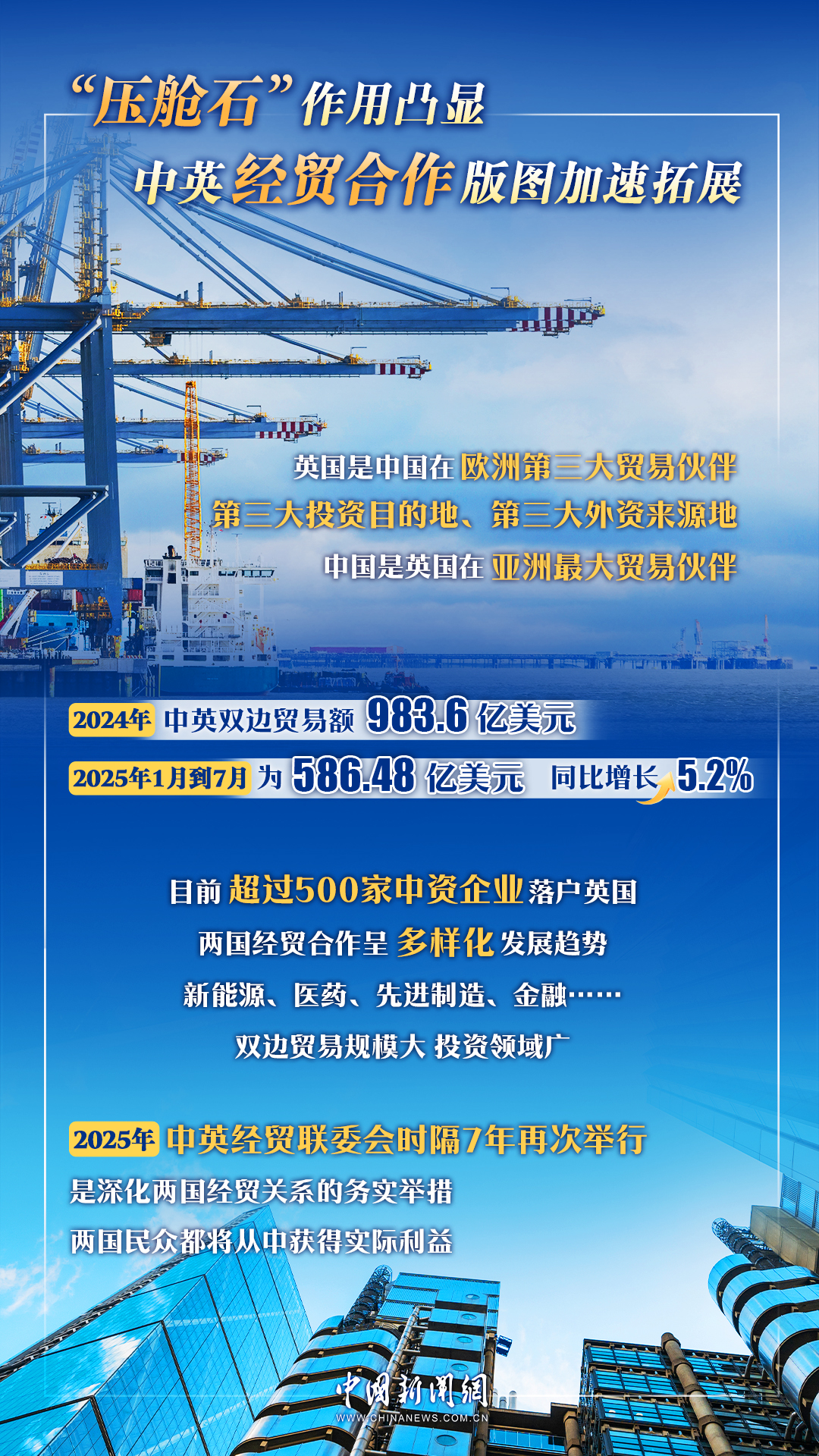 2025年2月,第十次中英戰(zhàn)略對話在倫敦舉行之際,中共中央政治局委員、外交部長王毅指出,中方視英方為重要戰(zhàn)略伙伴,愿落實兩國領(lǐng)導(dǎo)人重要共識,鞏固雙邊關(guān)系企穩(wěn)向好態(tài)勢,規(guī)劃好下階段高層交往,深化各領(lǐng)域務(wù)實合作,推動雙邊關(guān)系在新的一年展現(xiàn)新氣象。