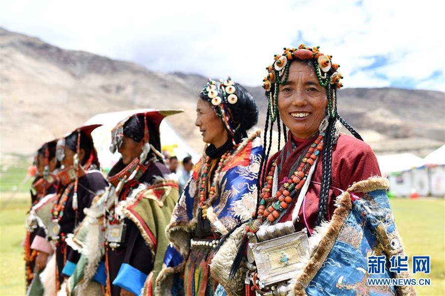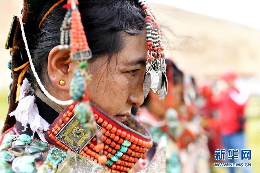 這是7月28日拍攝的身著普蘭服飾的普蘭縣科迦村村民。在西藏阿里地區(qū)普蘭縣,至今保留著獨(dú)特的藏族服飾——普蘭服飾。據(jù)了解,普蘭服飾已有1000多年的歷史,其中最精美、最獨(dú)特的是婦女的“孔雀”服飾,一套重達(dá)20多公斤,裝飾有黃金、白銀、蜜蠟、珊瑚、綠松石等,堪稱“穿在身上的千年歷史”。新華社記者詹彥攝