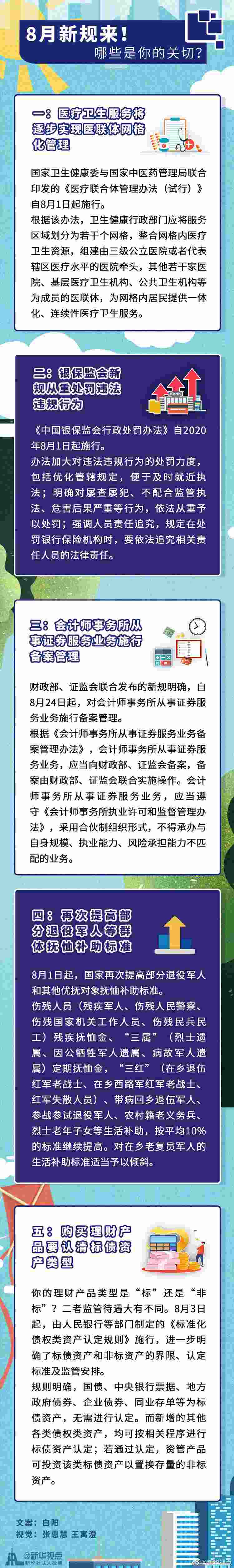 居民看病將逐步實現(xiàn)醫(yī)聯(lián)體網(wǎng)格化服務(wù)、銀保監(jiān)會新規(guī)進一步提升金融違法違規(guī)成本、部分退役軍人和其他優(yōu)撫對象撫恤補助標準再次提高……這個8月,又有一批新規(guī)開始施行,影響你我的生活。