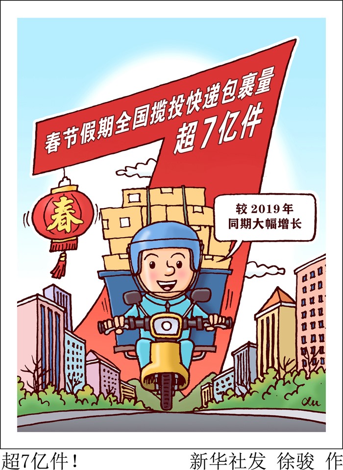 國(guó)家郵政局表示,今年春節(jié)期間,特色產(chǎn)品和節(jié)慶寄遞需求旺盛,農(nóng)產(chǎn)品繼續(xù)保持增長(zhǎng)態(tài)勢(shì)。郵政管理部門始終堅(jiān)持“保供應(yīng)、保暢通、保穩(wěn)定、保安全”,全力保障春節(jié)期間醫(yī)療物資寄遞、行業(yè)安全穩(wěn)定運(yùn)行和寄遞服務(wù)暢通有序,為人民群眾度過幸福安康歡樂祥和的春節(jié)提供了良好的寄遞服務(wù)保障。