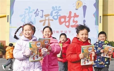 安徽省合肥市蜀山區(qū)北苑村社區(qū)琥珀小學(東區(qū)),孩子們在校園里迎接新學期的到來。陳三虎攝(影像中國)