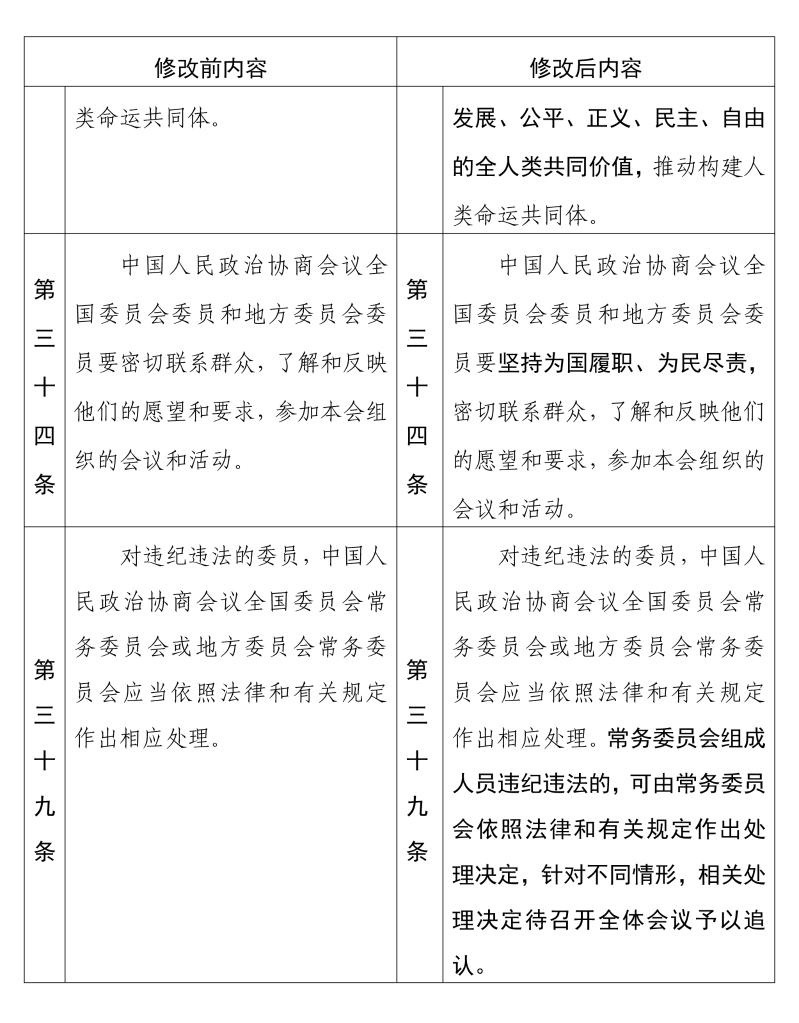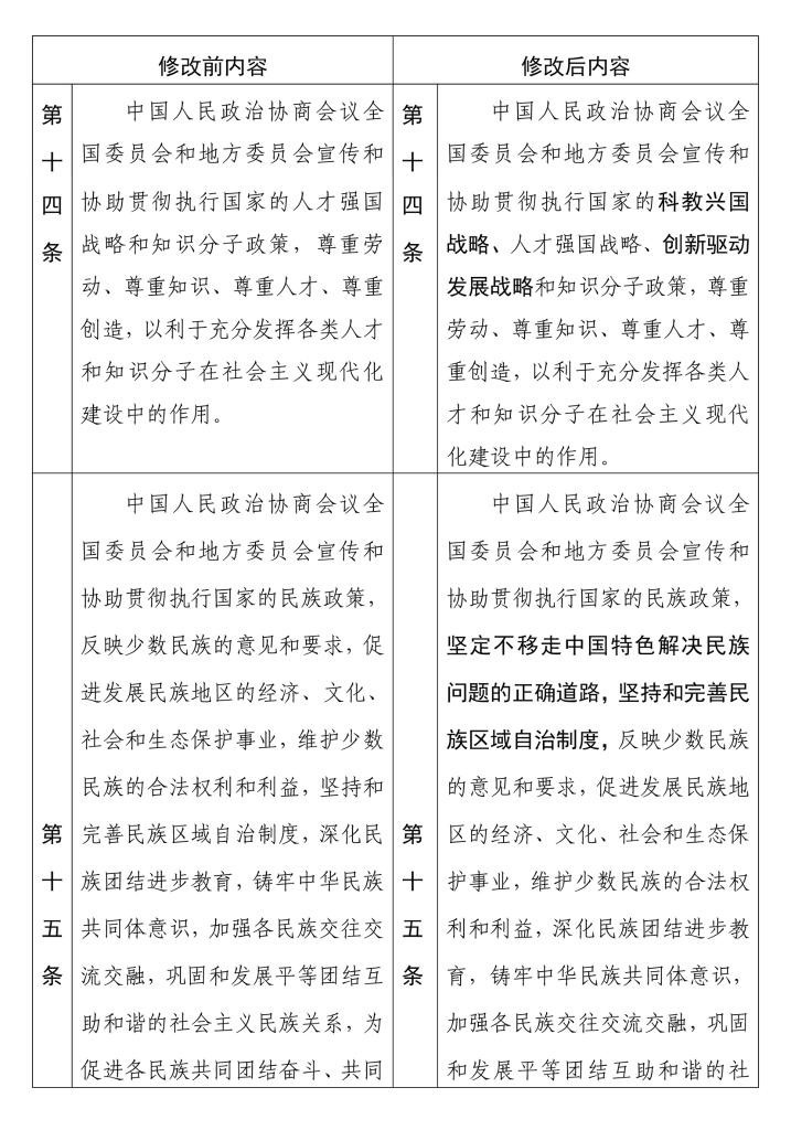中國人民政治協(xié)商會議章程 修改前后內(nèi)容對照表(14) 新華社發(fā)