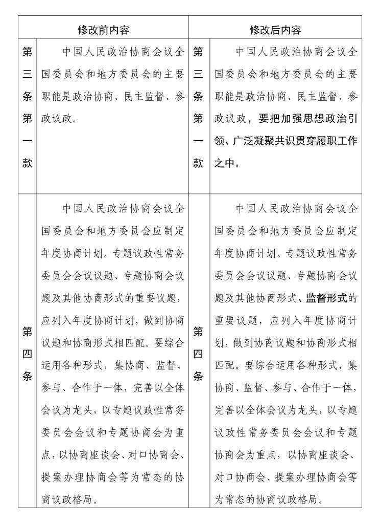 中國人民政治協(xié)商會議章程 修改前后內(nèi)容對照表(4) 新華社發(fā)
