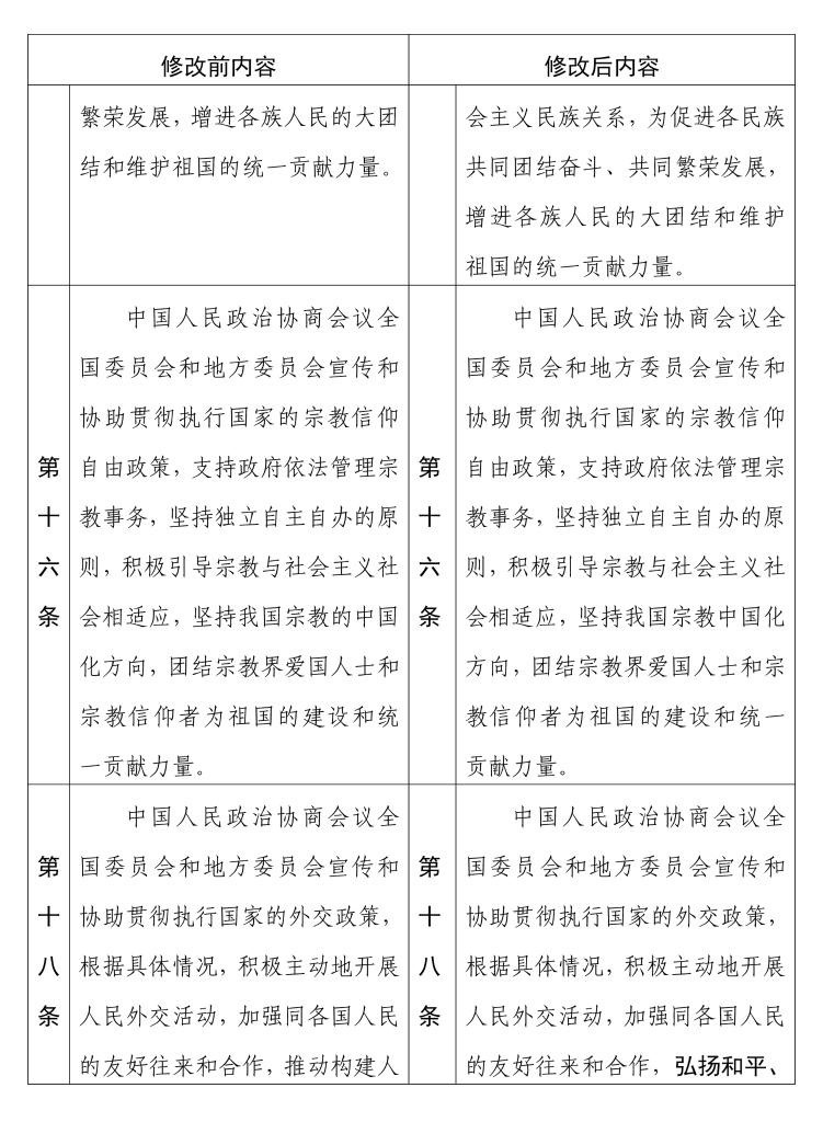 中國人民政治協(xié)商會議章程 修改前后內(nèi)容對照表(16) 新華社發(fā)
