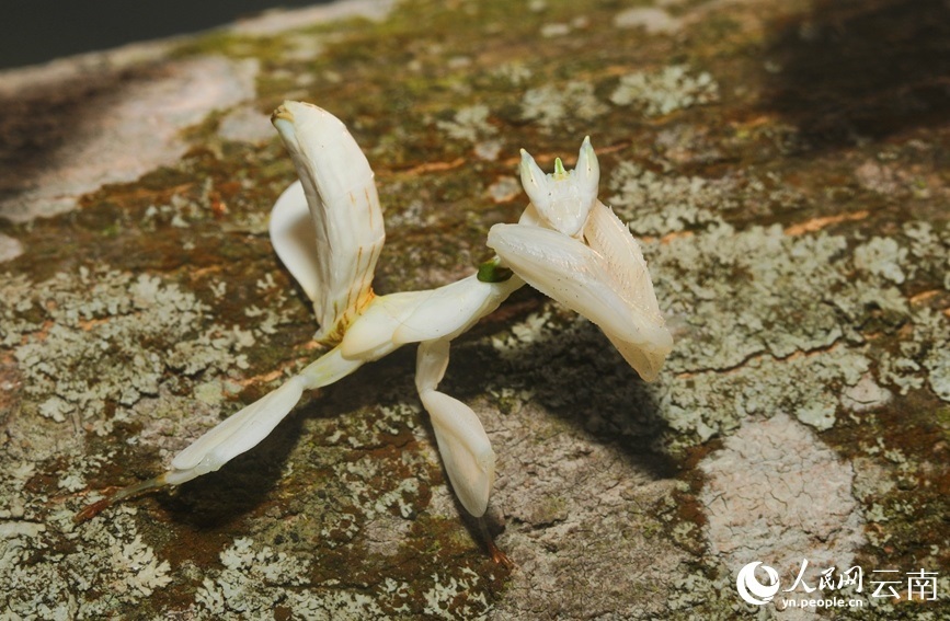 寧洱縣同心鎮(zhèn)林業(yè)和草原服務(wù)中心主任楊夢醒介紹,經(jīng)鑒定,這只白色的蟲子是昆蟲綱花螳科的一種動(dòng)物,名為蘭花螳螂,是螳螂目中最為漂亮的一種,比較稀有?!拔覀兺ㄟ^查閱資料發(fā)現(xiàn),蘭花螳螂在寧洱縣并無記錄,這次是首次發(fā)現(xiàn)。”