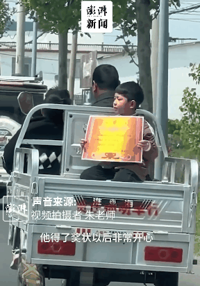 江蘇連云港一小男孩放學(xué)一路舉著獎狀的視頻走紅,老師:一年級學(xué)生,可能是怕獎狀太大,放進(jìn)書包會被折,一路從校門口舉回了家。