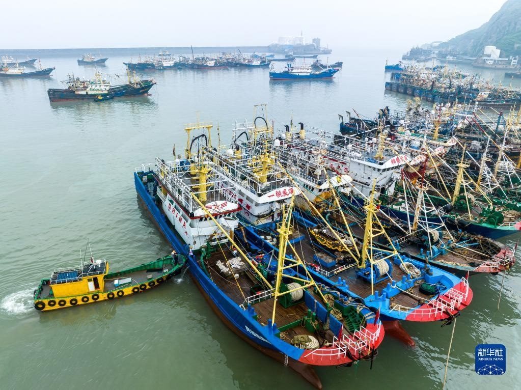 當日,在浙江省溫嶺市石塘鎮(zhèn),漁船陸續(xù)進港停靠,迎接即將到來的休漁期。新華社發(fā)(徐偉杰攝)