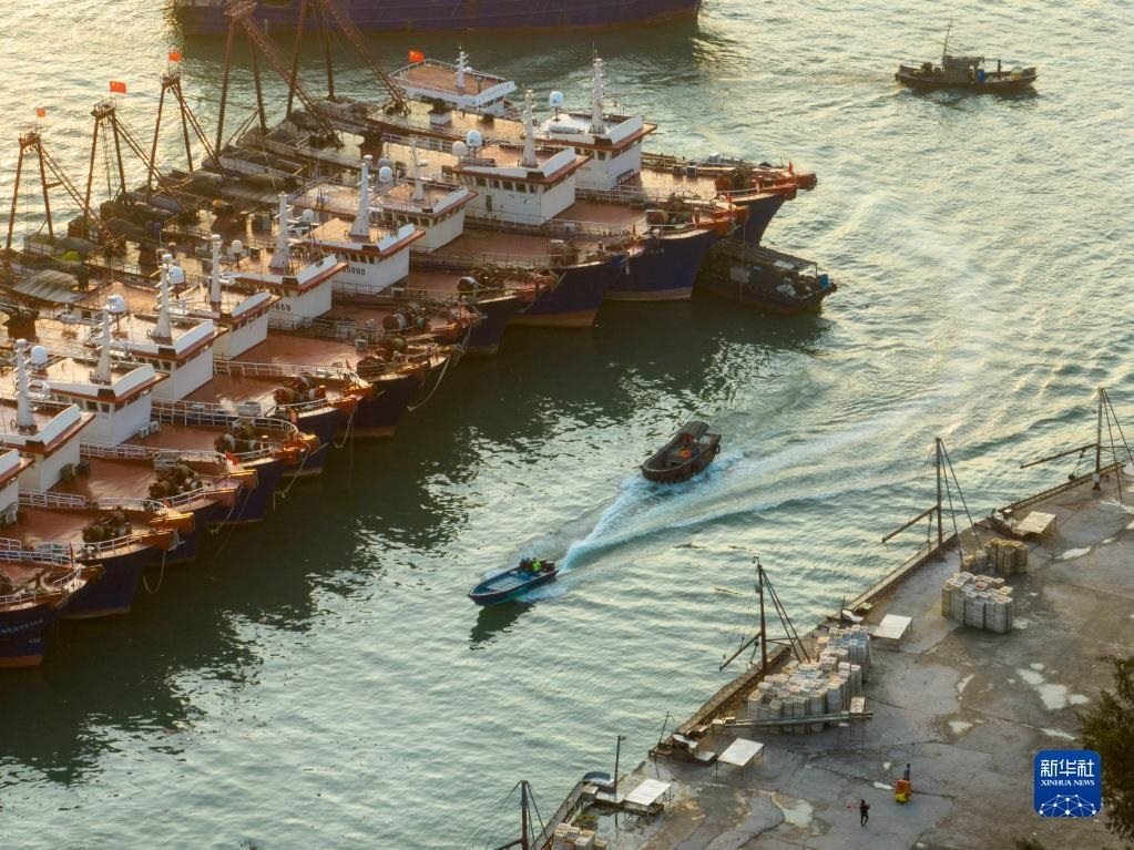 4月30日清晨,在浙江省舟山市普陀區(qū)沈家門漁港,漁船陸續(xù)進(jìn)港準(zhǔn)備休漁(無(wú)人機(jī)照片)。