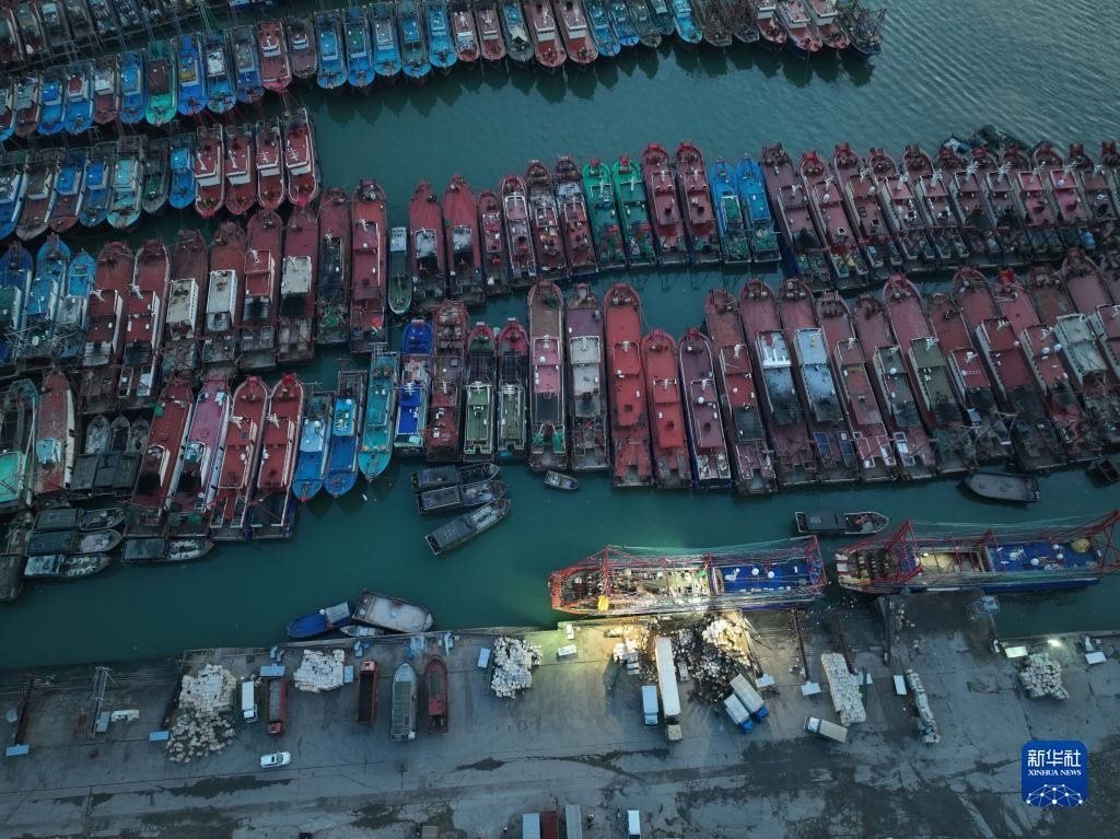 4月30日,準(zhǔn)備休漁的漁船停泊在福建省福州市連江縣苔菉鎮(zhèn)北茭村漁港(無(wú)人機(jī)照片)。