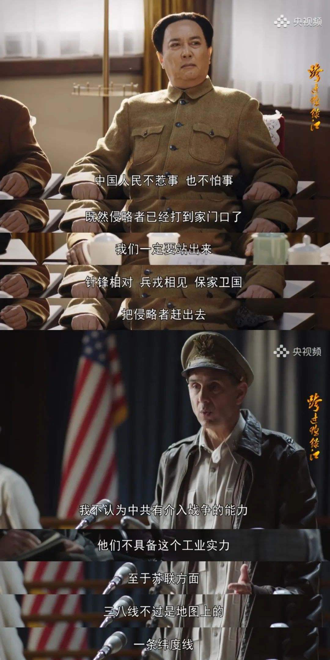 電視劇《跨過鴨綠江》一開篇,就通過劇情演繹及真實的歷史影像,講清楚抗美援朝戰(zhàn)爭的來龍去脈。