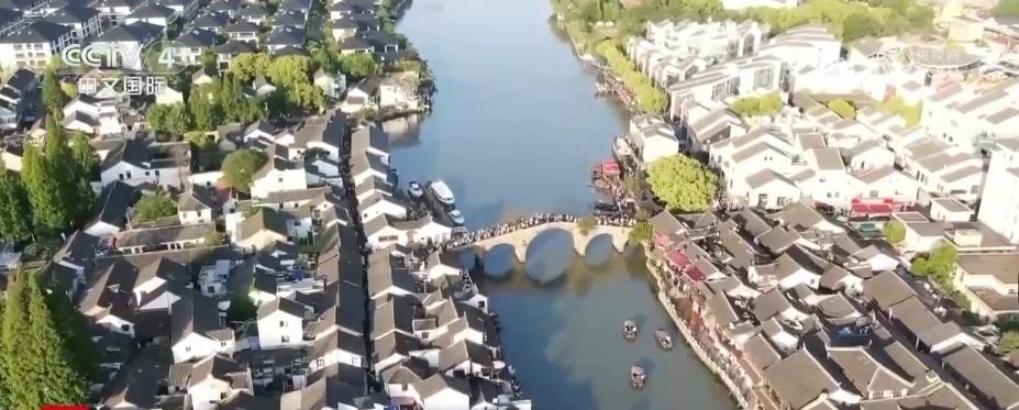 在上海,不少游客來(lái)到青浦區(qū)的古鎮(zhèn)朱家角,感受江南的水鄉(xiāng)風(fēng)情。除了看園林、看建筑,還有一系列沉浸式游覽。游客可以坐上小船,也可以走進(jìn)茶樓,感受水鄉(xiāng)風(fēng)情,聽聽評(píng)彈,吃江南糕點(diǎn),品上海味道。