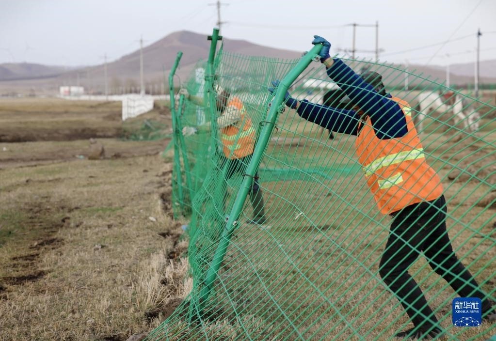 5月2日,河北省承德市豐寧滿族自治縣大灘鎮(zhèn)扎拉營村的護林員趙世海(右)和羅金寶在海留圖國家濕地公園修復(fù)護欄。