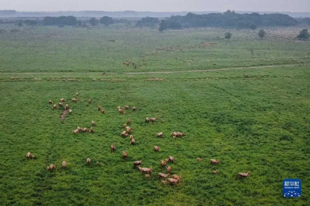 石首麋鹿國家級自然保護區(qū)成立于1991年,這里牧草豐富,濕地生態(tài)系統(tǒng)完整。30多年間,麋鹿種群繁衍擴散,逐漸形成了保護區(qū)、東升三合垸、小河楊波坦及湖南洞庭湖4個小種群,從最初引進的64頭發(fā)展到2500余頭,全部實現(xiàn)自然繁衍,恢復(fù)了野生習(xí)性。