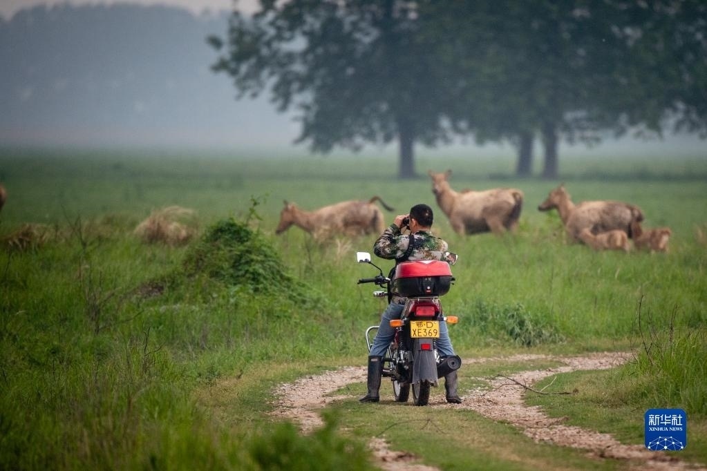 巡護隊伍通過望遠鏡、長焦相機、無人機、視頻監(jiān)測塔、紅外相機等工具,對1500余頭麋鹿進行日常監(jiān)測、年節(jié)律周期監(jiān)測、種群動態(tài)監(jiān)測,并對保護區(qū)內(nèi)的氣象數(shù)據(jù)、水文數(shù)據(jù)、地表水質(zhì)數(shù)據(jù)、植被類型以及其他野生動物情況進行監(jiān)測記錄。他們還需要承擔卡口值守、應(yīng)急管理等工作。在他們的悉心照料下,這里成為適宜麋鹿種群棲息的家園。