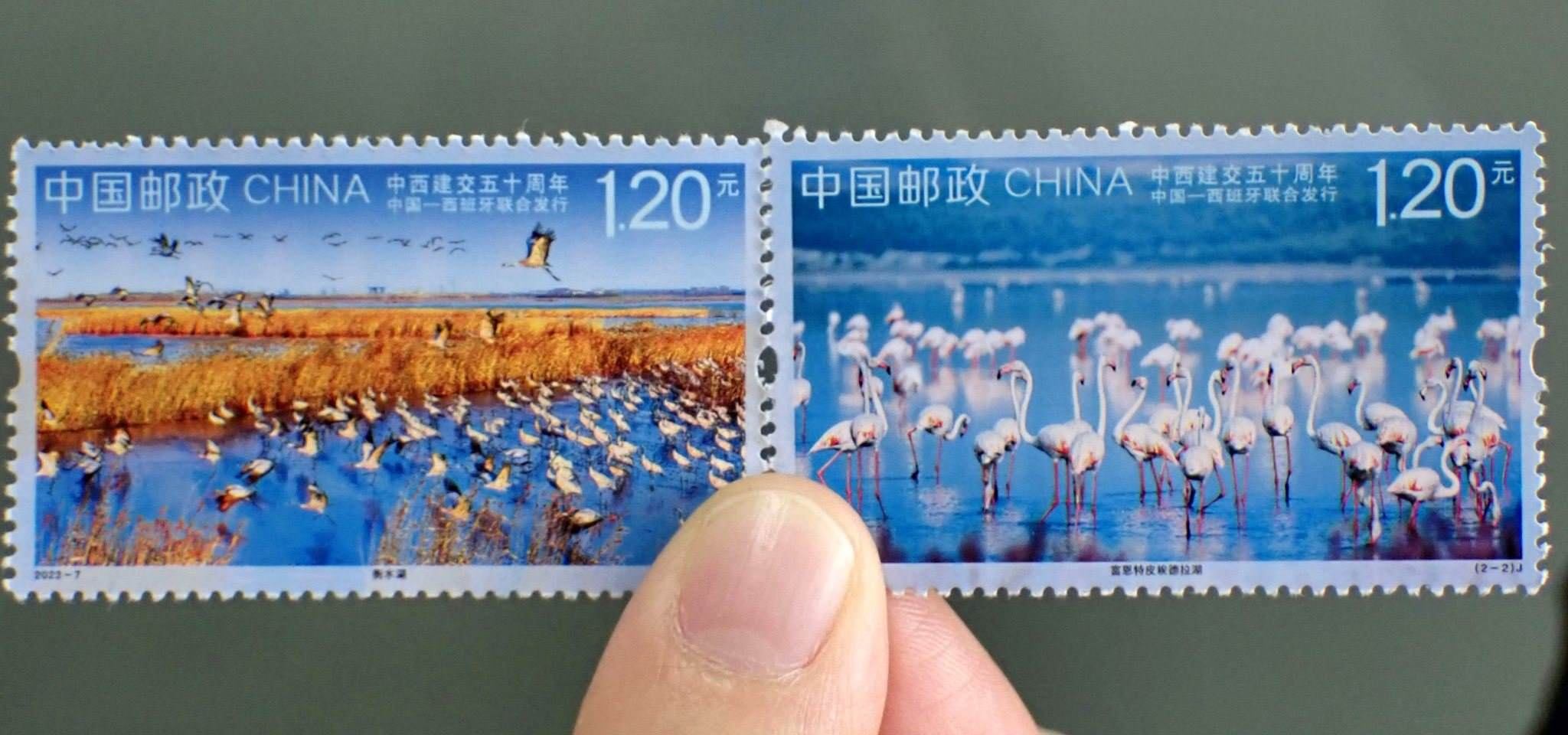 2023年5月10日,中國郵政發(fā)行《中西建交五十周年》紀(jì)念郵票(與西班牙聯(lián)合發(fā)行),紀(jì)念郵票1套2枚。視覺中國