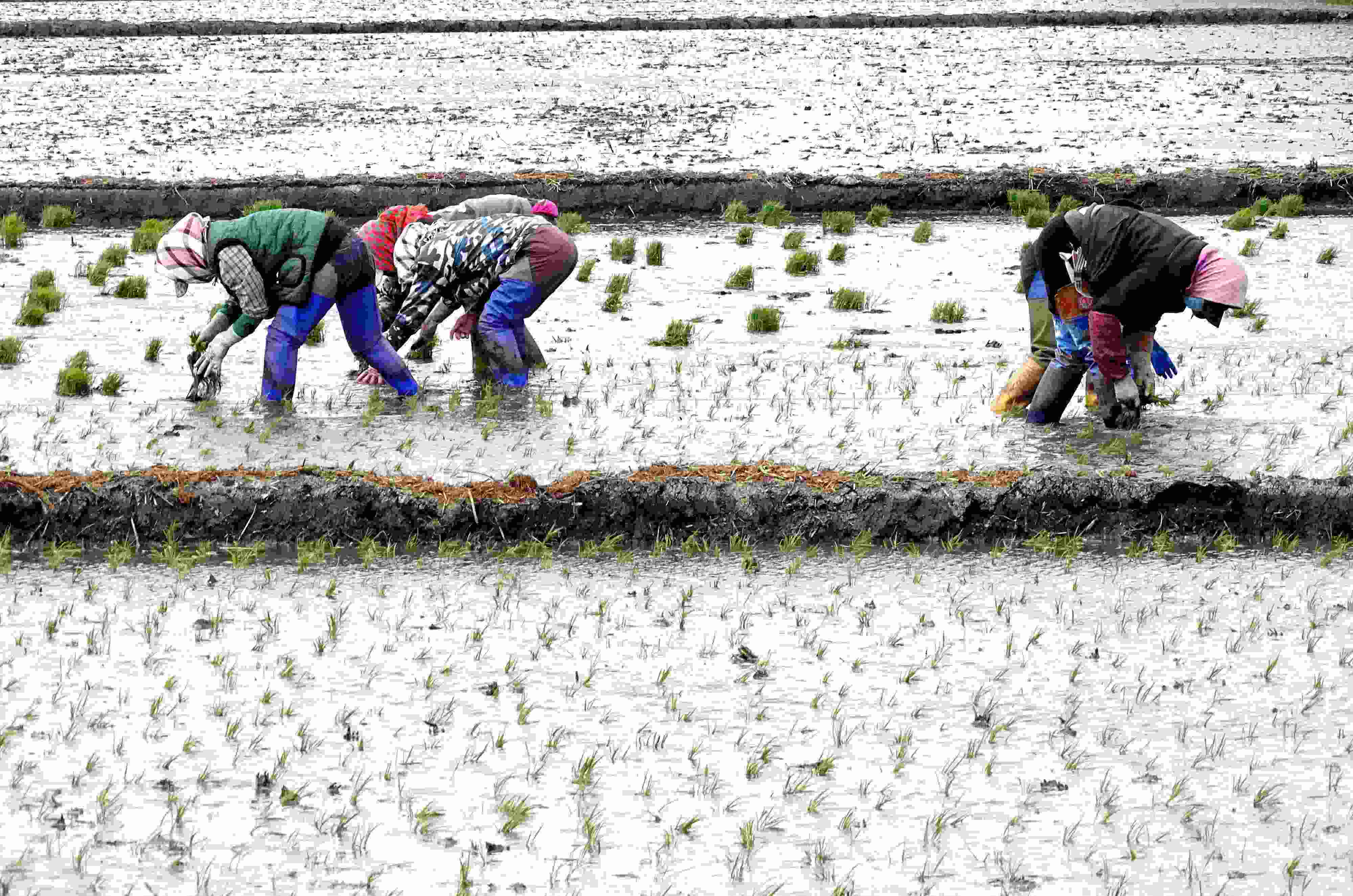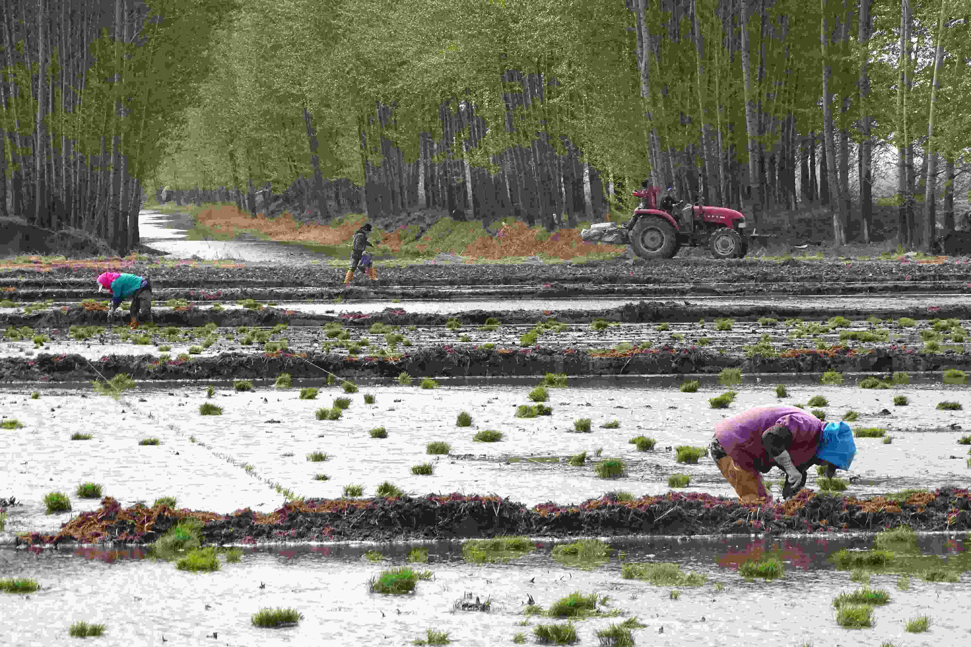 五月中旬,黑龍江省五常市,當?shù)剞r(nóng)戶搶抓農(nóng)時開展夏季插秧大生產(chǎn),田間地頭一派繁忙景象。 (吳胡荼 攝)