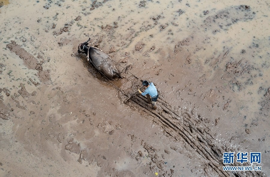 一場雨后,農戶抓緊時間犁地。新華網(wǎng)發(fā)(朱云平 攝)