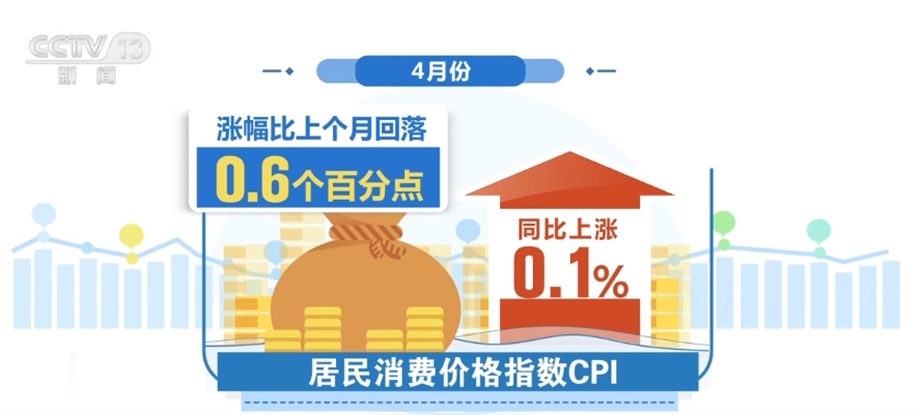 國家統(tǒng)計局新聞發(fā)言人付凌暉介紹,今年以來,居民消費(fèi)價格指數(shù)也就是CPI同比漲幅總體上是回落的,4月份同比上漲0.1%,漲幅比上個月回落了0.6個百分點(diǎn),CPI走低主要是一些階段性因素影響。