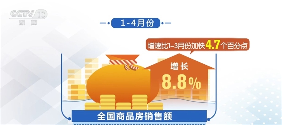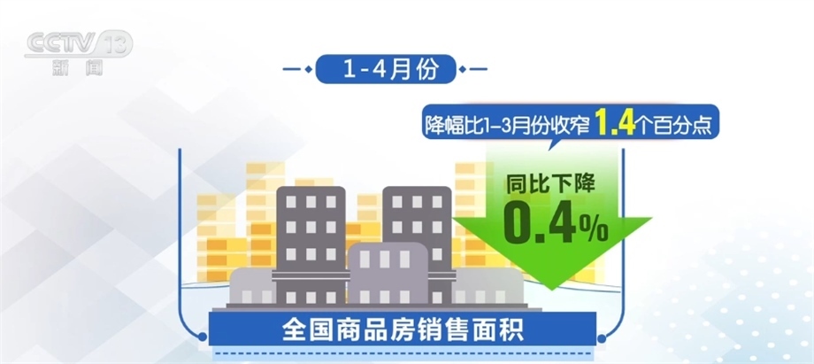 從銷售看,隨著政策效應(yīng)逐步顯現(xiàn),以及前期疫情積累的需求釋放,1—4月份,全國(guó)商品房銷售面積同比下降0.4%,降幅比1—3月份收窄1.4個(gè)百分點(diǎn)。銷售額增長(zhǎng)8.8%,增速比1—3月份加快4.7個(gè)百分點(diǎn)。