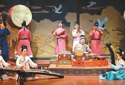 陜西省西安市大唐芙蓉園內(nèi)上演的舞臺(tái)劇《鼓》。