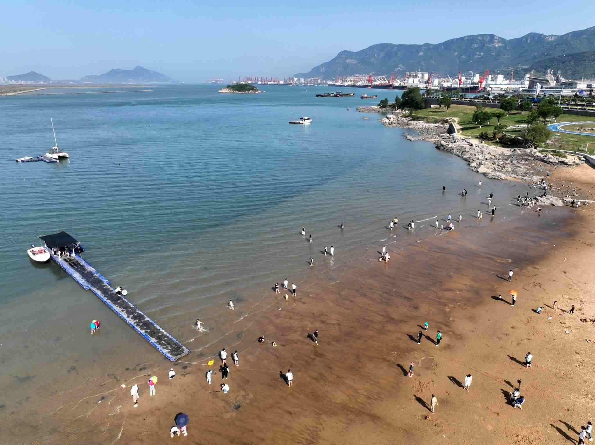 5月19日是中國旅游日,江蘇省連云港市在海一方公園,游客海邊旅游觀光。視覺中國