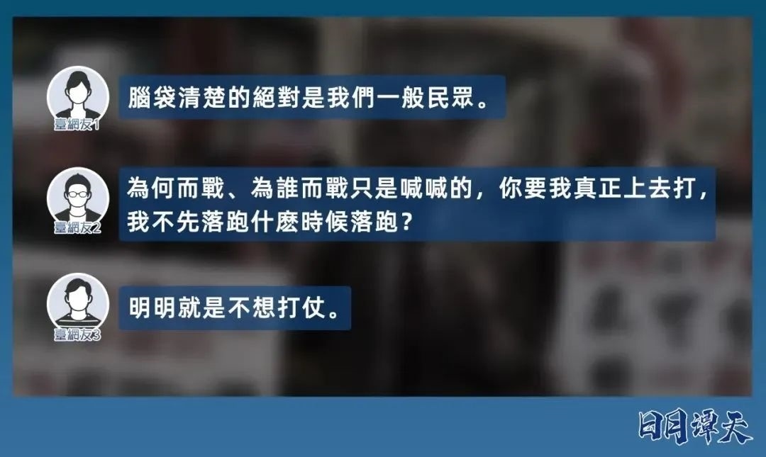 島內(nèi)專家給譚主分析了臺(tái)灣青年不愿再賣命背后的深層邏輯。越來越多臺(tái)青意識(shí)到,“臺(tái)獨(dú)”意味著戰(zhàn)爭(zhēng),為“臺(tái)獨(dú)”上戰(zhàn)場(chǎng),打的是一場(chǎng)非正義的分裂國(guó)土之戰(zhàn),要背負(fù)歷史罵名,臺(tái)灣年輕人憑什么要為此賭上性命?與其被民進(jìn)黨當(dāng)局裹挾著為“臺(tái)獨(dú)”送死,不如盡早“跳車”,遠(yuǎn)離臺(tái)軍。