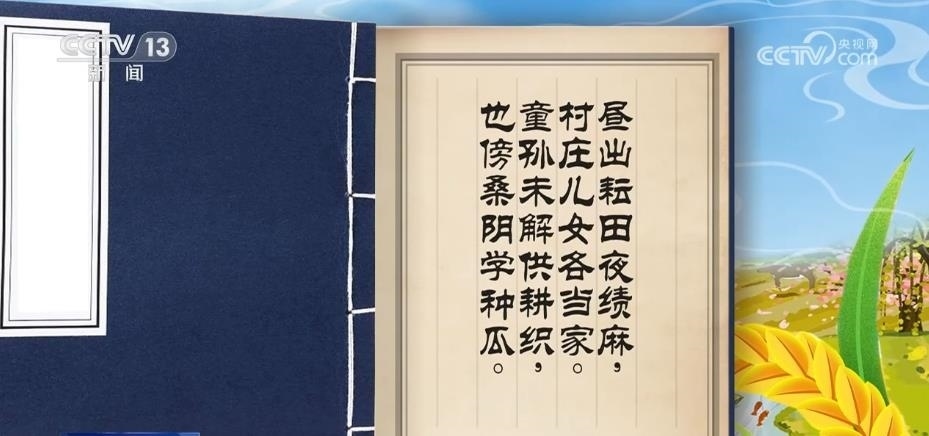 接下來寫道,“晝出耘田夜績麻,村莊兒女各當家。童孫未解供耕織,也傍桑陰學種瓜”。描寫了“三夏”的繁忙景象,農民白天去田里從事田間勞動,夜晚在家中搓麻線,村中男男女女各有各的家務勞動。小孩子雖然不會耕田織布,也在桑樹蔭下學種瓜。