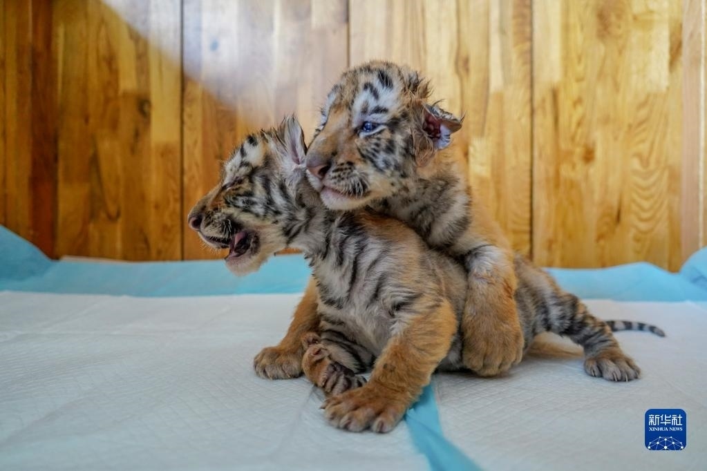 這是5月22日在黑龍江東北虎林園的虎舍中拍攝的東北虎幼崽。