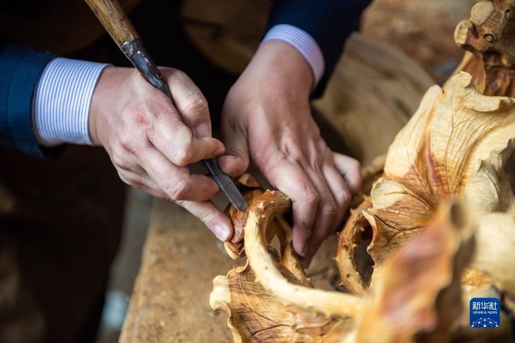 洞口木雕已被正式列入湖南省省級非物質(zhì)文化遺產(chǎn)名錄,木雕產(chǎn)品遠銷70多個國家和地區(qū)。新華社記者 陳思汗 攝