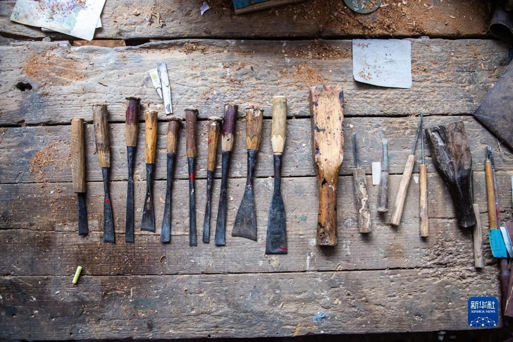 這是5月23日在洞口縣巖山鎮(zhèn)陽家山村拍攝的制作洞口木雕的工具。