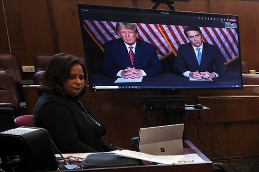 ·當(dāng)?shù)貢r間5月23日,美國前總統(tǒng)特朗普通過視頻會議出席了“封口費”一案的預(yù)審聽證會,庭審持續(xù)約15分鐘。
