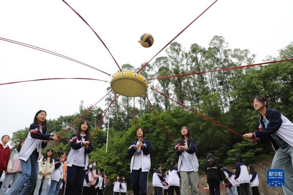 5月23日,四川省廣安市武勝中學(xué)高三學(xué)生開展“同心擊鼓”心理調(diào)適趣味游戲活動。