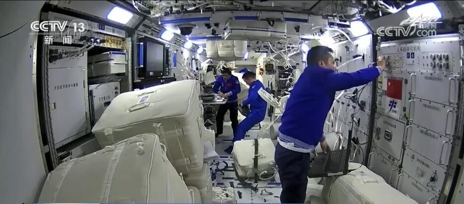 2022年6月5日,空間站迎來(lái)了神舟十四號(hào)陳冬、劉洋、蔡旭哲三名航天員入駐。隨著問(wèn)天實(shí)驗(yàn)艙、夢(mèng)天實(shí)驗(yàn)艙的先后到來(lái),他們?cè)谌蝿?wù)期間迎來(lái)了中國(guó)空間站“T”字基本構(gòu)型組裝完成的歷史性時(shí)刻,開啟中國(guó)人太空“三居室”時(shí)代。