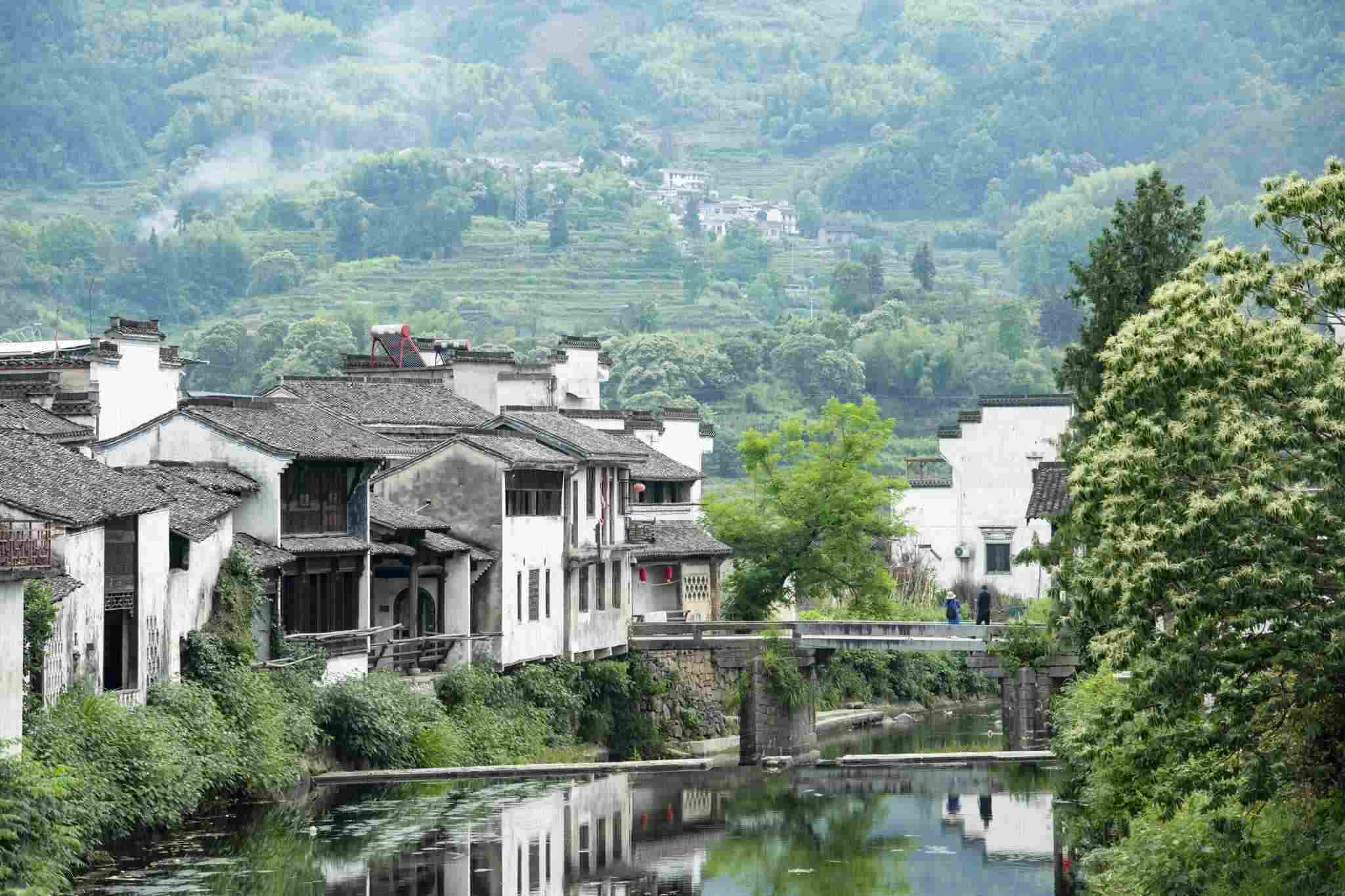 安徽黃山:呈坎村綠樹(shù)成蔭碧水蕩漾