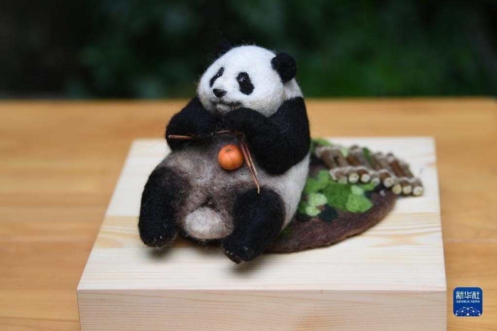 這是5月29日在成都大熊貓繁育研究基地都江堰野放繁育研究中心拍攝的市民以梅蘭為原型制作的毛氈禮物。