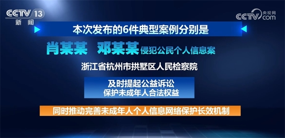 發(fā)布會(huì)上,最高檢還聯(lián)合國(guó)家網(wǎng)信辦、國(guó)務(wù)院婦兒工委,發(fā)布了6件網(wǎng)絡(luò)保護(hù)典型案例,為各地檢察機(jī)關(guān)對(duì)辦理同類問(wèn)題提供案例指導(dǎo)和規(guī)則指引。