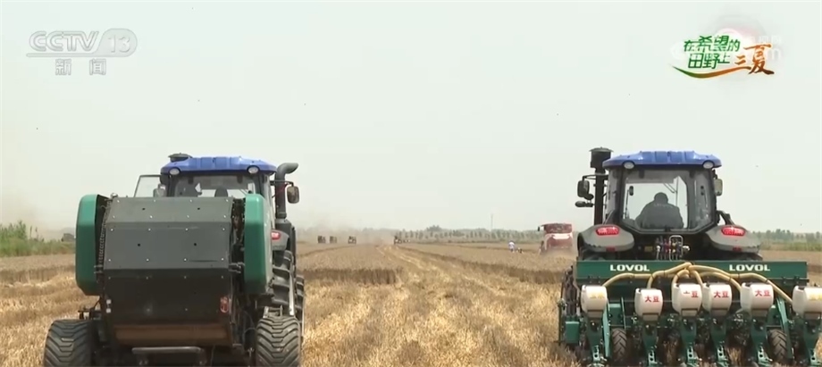 當(dāng)然,確保顆粒歸倉,除了要減損,更要及時(shí)搶收。今年麥?zhǔn)掌陂g,當(dāng)?shù)赜錾狭撕币姷慕涤晏鞖?,而?日開始預(yù)計(jì)還會(huì)有一輪降雨,所以大比武的同時(shí),搶收也在抓緊進(jìn)行,大家要抓緊這幾天的窗口期,進(jìn)行24小時(shí)的搶收作業(yè)。農(nóng)業(yè)專家告訴我,在當(dāng)?shù)?,降雨?duì)于麥?zhǔn)盏挠绊懹袃牲c(diǎn),一個(gè)是土地變得潮濕松軟,大型機(jī)械下地難。針對(duì)這點(diǎn),當(dāng)?shù)匾膊扇×舜胧?,在一些土地還沒有干透的麥田里,我們看到有不少履帶式的收割機(jī),它們雖然體型稍小,但履帶可以避免陷入土地,還有一些無人駕駛的智慧農(nóng)機(jī),可以解決搶收時(shí)的人手問題。這些都是當(dāng)?shù)剞r(nóng)業(yè)部門按照農(nóng)戶需求及時(shí)幫助調(diào)配的。目前,阜南全縣投入聯(lián)合收割機(jī)4300多臺(tái),組建了搶收服務(wù)隊(duì)76個(gè)、農(nóng)機(jī)維修服務(wù)隊(duì)28個(gè),將爭取在5天內(nèi)完成全部麥?zhǔn)铡?/p>