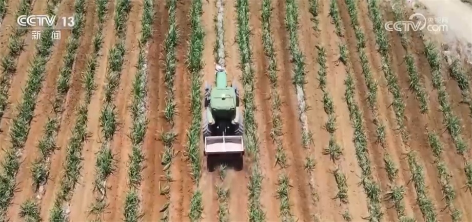廣西崇左:甘蔗進入拔節(jié)期 機械田管提高效率