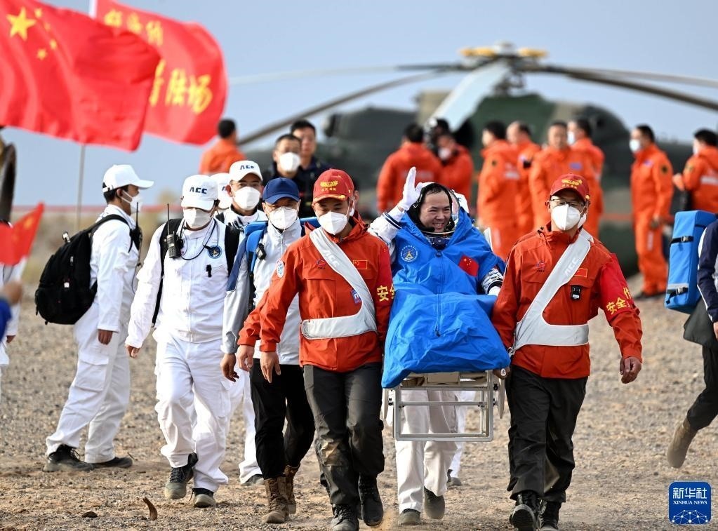 6月4日,神舟十五號載人飛船返回艙在東風著陸場成功著陸,神舟十五號載人飛行任務取得圓滿成功。這是航天員張陸安全順利出艙。新華社記者 連振 攝